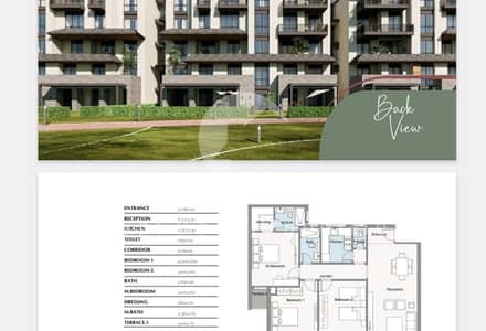 مساحة 152 متر : 3 غرف نوم + 3 حمامات + تراس كبير