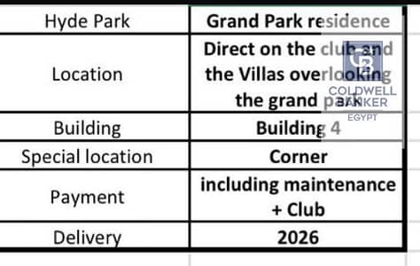 شقة للبيع في جراند بارك ريزيدنس هايد بارك