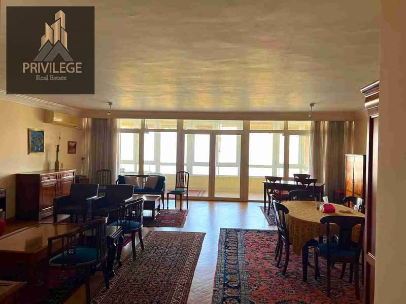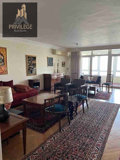 Apartment for sale in Maadi, Nile Corniche, Najm El Maadi, Nile Towers 3A, 19th floor, full Nile and Pyramids view, 270 sq m, 3 bedrooms, 3 bathrooms with electric water heaters, one jacuzzi, washing machine and dishwasher pre-installed, air conditioners installed, large 90 sq m kitchen, reception and living room, large living room, 16 sq m balcony with double glazing, storage room. Price: 13,000,000 EGP. Call