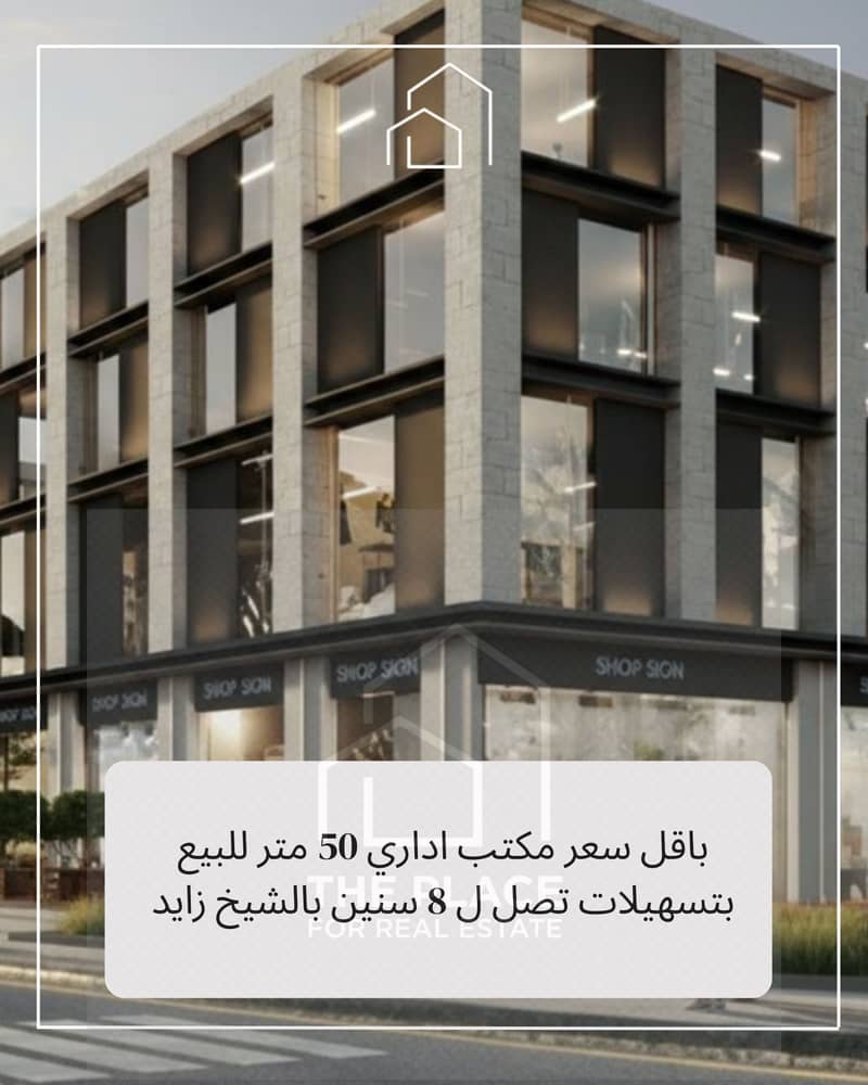 وحدة إدارية 50 متر مميزة بالدور الثاني – بالقرب من ا الشيخ زايد، موقع استراتيجي وبواجهة مميزة، تسهيلات تقسيط حتى 8 سنوات
