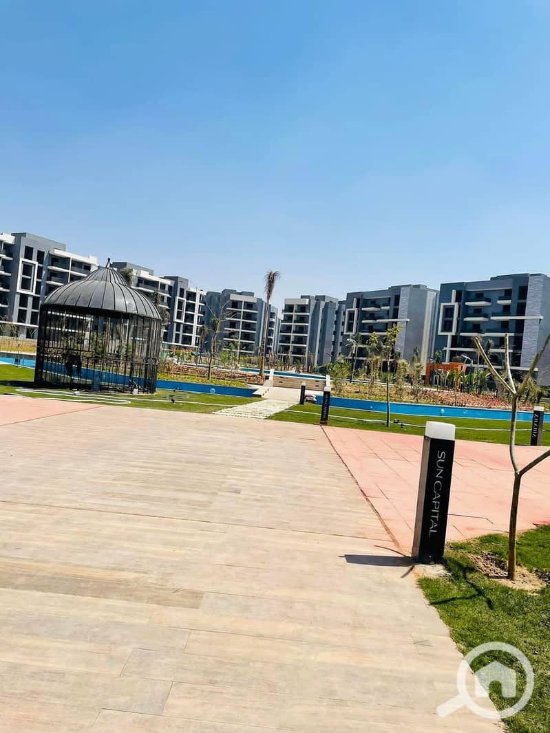 شقة للبيع بجاردن خاصة في كمبوند صن كابيتال بخصم 45% او باقل مقدم وتقسيط علي 8 سنوات