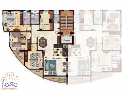 التقسيمه: 3 غرف منهم ماستر و3 حمام و3 تراس ومطبخ ورسبشن كبير