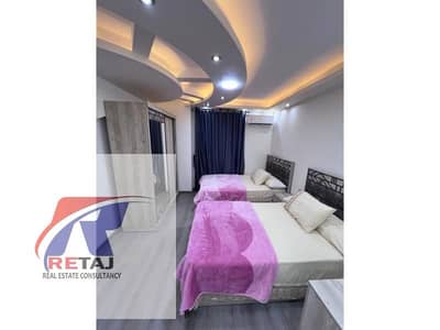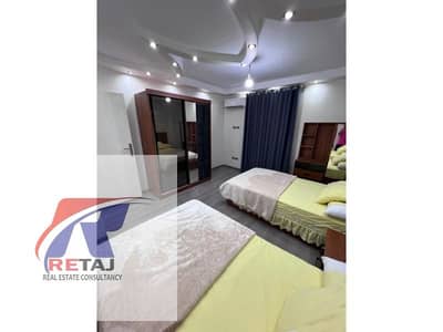 فرصه للايجار شقه مفروشه بسعر مغري جدا المنطقة السادسه علي مربع حديقه عماره حديثه .