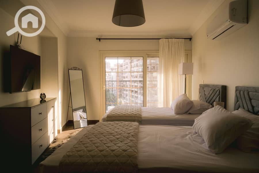 شقة مفروشة للإيجار بمساحة 115 متر مربع، مكونة من غرفتي نوم، في موقع مميز بالدقي – الجيزة.