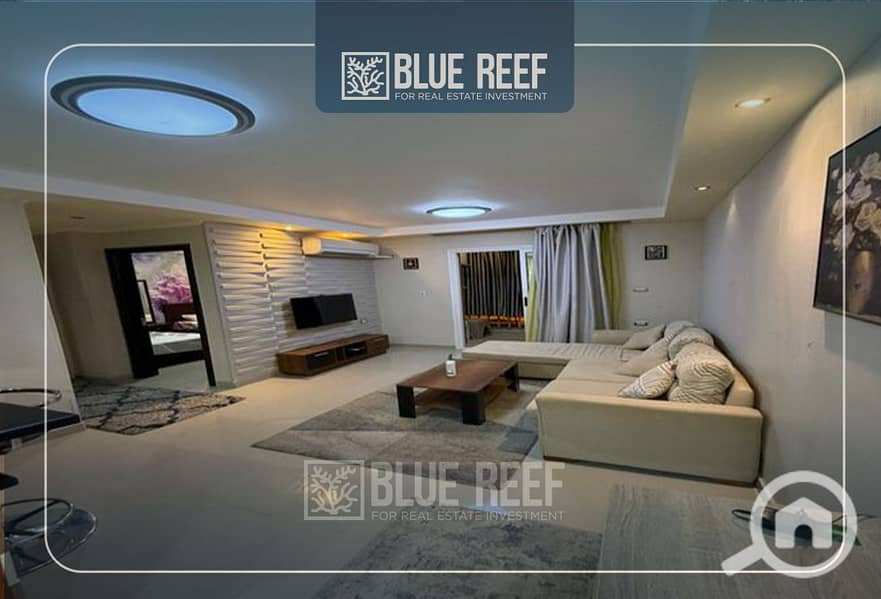 شقة للايجار متشطبة الترا سوبر لوكس بالفرش و الاجهزة غرفتين بموقع مميز جدا في مدينتي