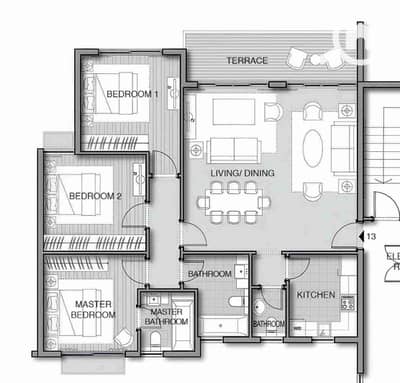 3 غرف نوم + 3 حمام + ريسبشن 3 قطع