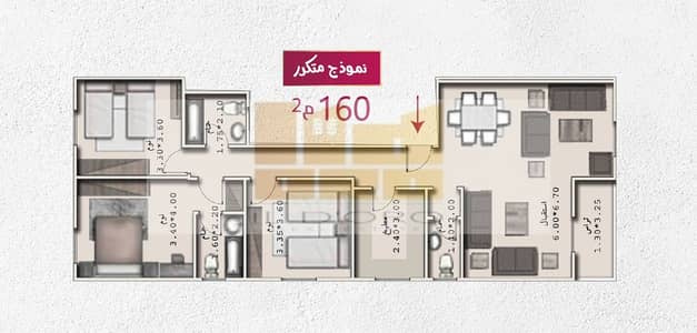المساحه : 160 متر