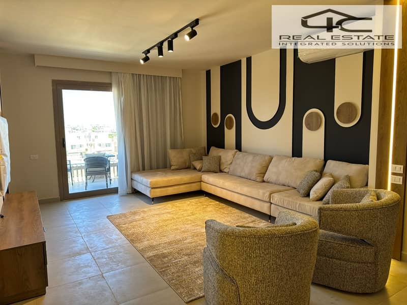 شاليه دور تالت ديراكت على البول فيو مفتوح بحرى صريح مفروش بالكامل