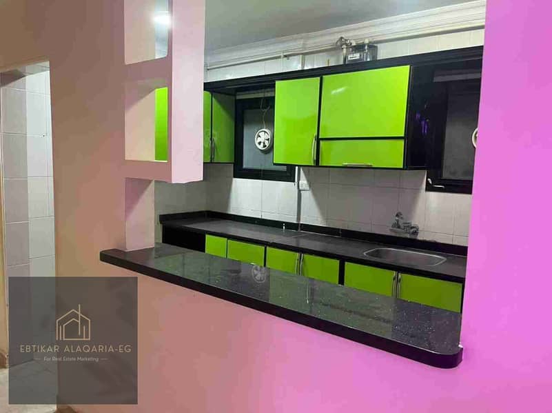 للأيجار شقة مساحة 107م الرحاب تشطيب خاص بالكامل 3 غرف نوم بالمطبخ والتكييفات أسانسير خاص