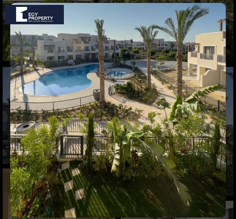 عرض حصري فيلا تاون هاوس بإطلالة على حمام السباحة للبيع مفروشة بالكامل استلام فوري مراسي الساحل الشمالي