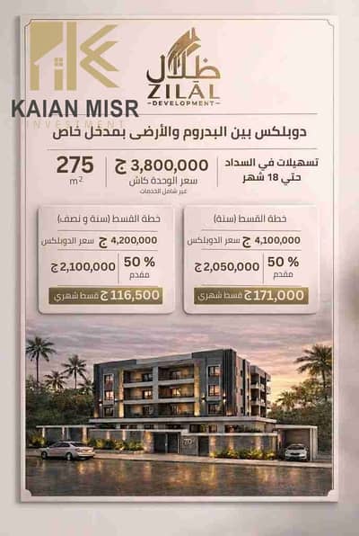 دوبلكس خلفي مميز قسط على سنة ونص بمساحة ٢٧٥م + ٨٥م جاردن فالحي الثالث شرق