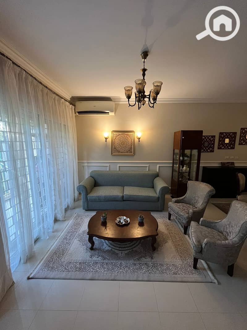 الشقة مفروشة بالكامل بالمطبخ و الاجهزة و التكييفات