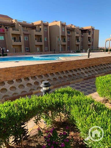 مطبح + تراس كبير + حديقه كبيره تطل علي حمام السباحه