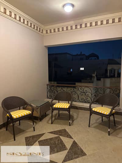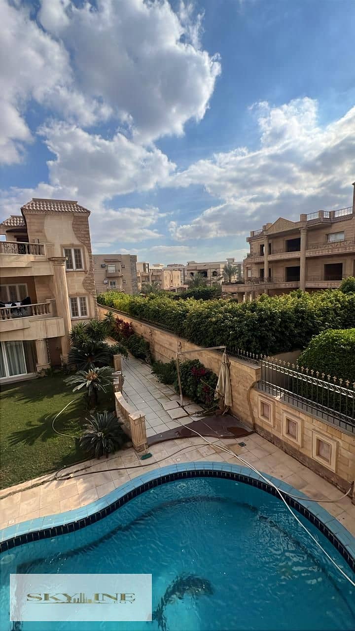 بلكونة تطل على الجنينه وحمام السباحة مما يوفر إطلالة مريحة ومميزة