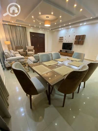 شقة فرش فندقي للإيجار دور أرضي بمدخل خاص في الشيخ زايد – الحي الثامن، موقع متميز بين ذي جيت مول وإسبانيا مول.
