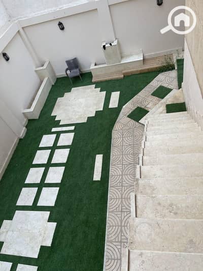 الدور الارضى مكون من : غرفة سفره وتراس وحمام ومطبخ وغرفه كبيره ليفنج وريسبشن مكون من 4 قطع وتراس على الجاردن كبير جدا