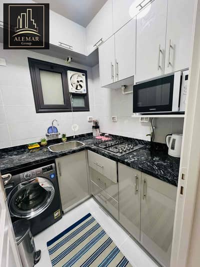 شقه فندقيه للايجار المفروش بمدينتي بــ ( B8 ) _ ( 2 غرفه - حمام - مطبخ - ريسبشن ) _ تشطيب سوبر لوكس ، مكيفه بالكامل _