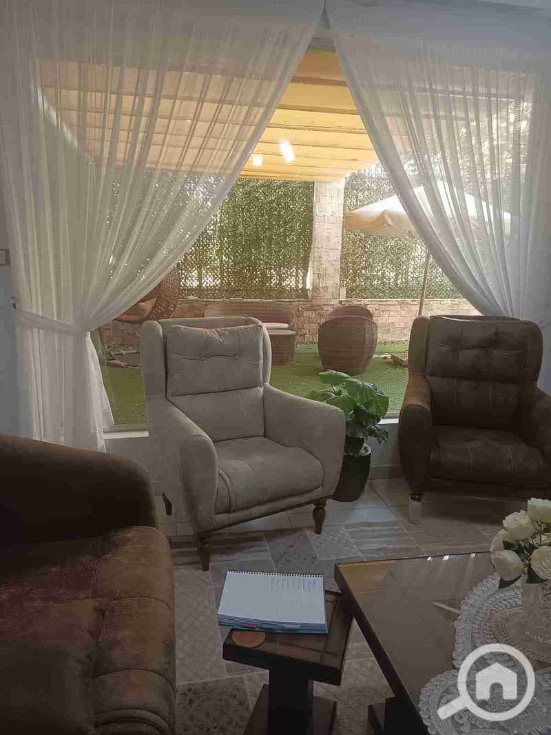 شقة للبيع ارضى بحاردن منتجع النخيل التجمع الاول مساحة٤٥٠م مقسمة٢٥٠م مبانى +٢٠٠م جاردن تشطيب مهندس من شهور فقط هاى سوبرلوكس هاتعيش فى فيلا مش ٣غرف كبار جدا منهم واحده ماستر + ٢حمام واحد للغرفتين التانيين وواحد للضيوف+رسيبشن٣قطع كبير + ٢مخزن يوجد جاردن كبيره بها برجوله غاز طبيعى مسجله بالجمعيه وخالصه من الجهاز تليفون