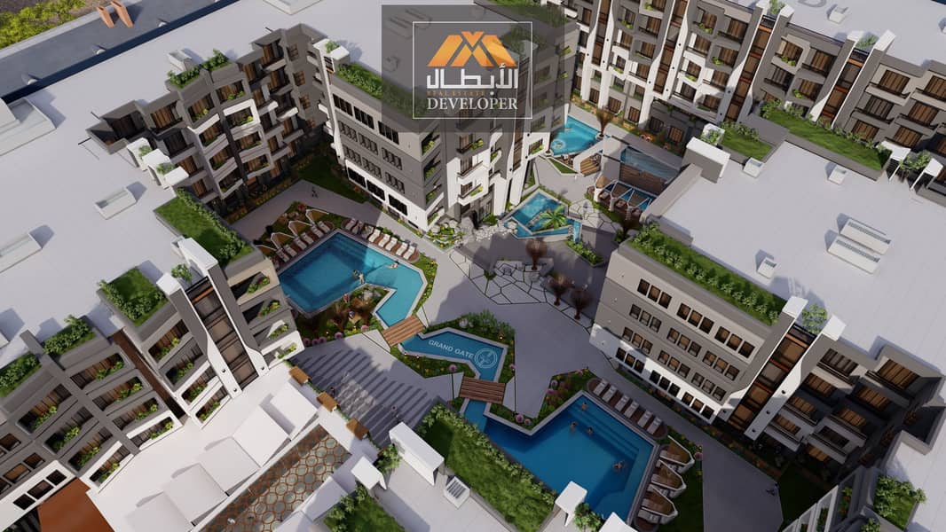 شقه73متر للبيع - بمنتجع جراند جيت خلف الممشى السياحي - عقد اخضر - بمقدم 30% وبخصم 25% على الكاش