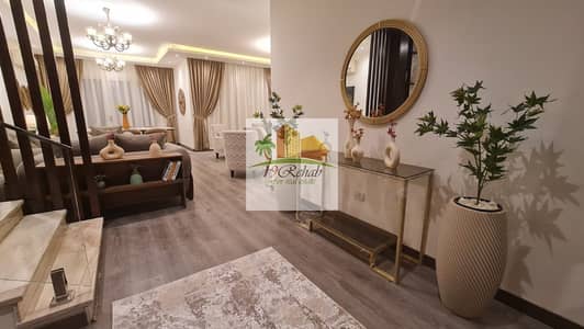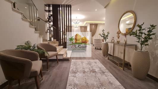 ٣ غرف وغرفة معيشه و٤ حمام ومطبخ وريسبسن و٢ غرفة سفره وغرفة نانى والفرش اول سكن