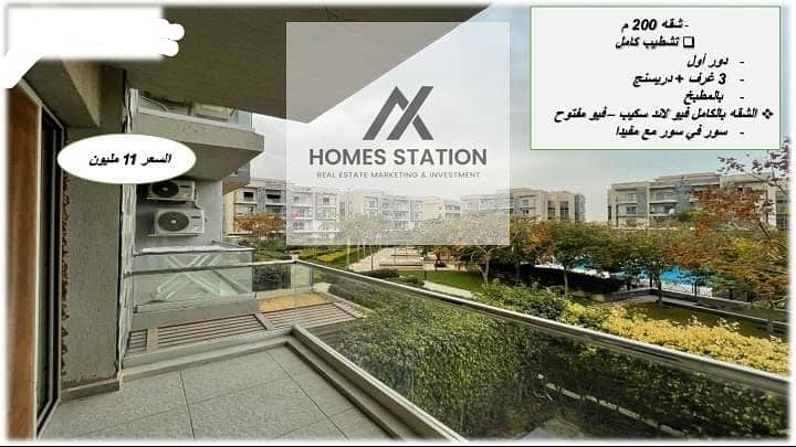 شقة متشطبة للبيع في كمبوند جاليريا، مفروشة بالكامل بالمطبخ، تقع في الدور الأول، تتكون من 3 غرف نوم + غرفة دريسنج، 3 حمامات، مع فيو مفتوح على المساحات الخضراء، جاهزة للسكن.