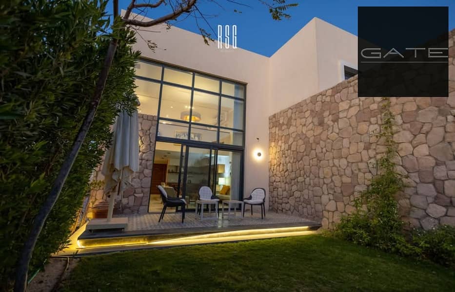 اي فيلا جاردن بموقع مميز جدًا داخل المشروع، قريبة من اللاجون وفيو مفتوح يدي إحساس بالخصوصية والهدوء