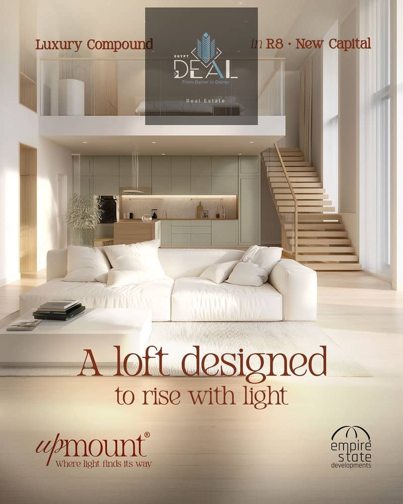 "لوفت مميز بموقع استراتيجي في قلب R8 بالعاصمة الإدارية – تقسيط مريح مع إطلالة مفتوحة على المساحات الخضراء والمسطحات المائية"