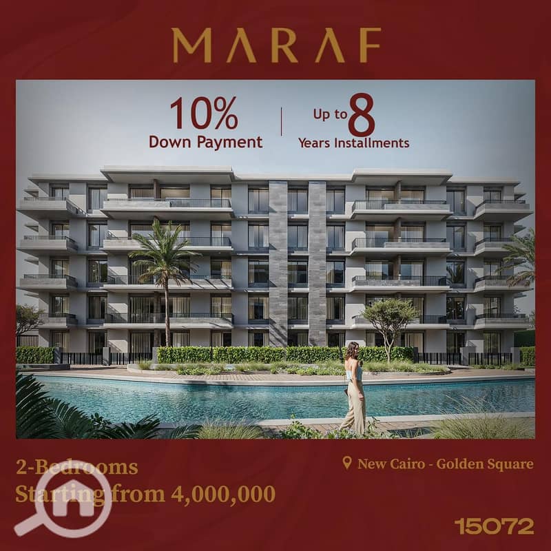 شقتك في التجمع الخامس بميني كومبوند من شركة مراف في اقوي موقع في التجمع دقائق لكل المحاور الرائسية و بمقدم 10% فقط مع اطلالة علي مساحات خضراء