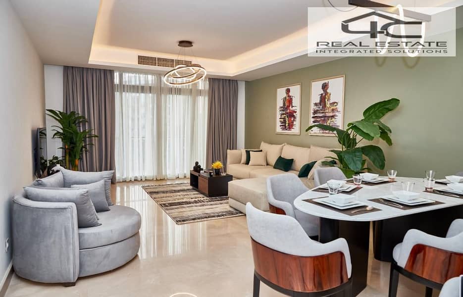 شقه 208متر متشطبه بالكامل 3 غرف نوم للبيع في كايرو فيستيفال سيتي موقع متميز فيو لاند سكيب في التجمع الخامس