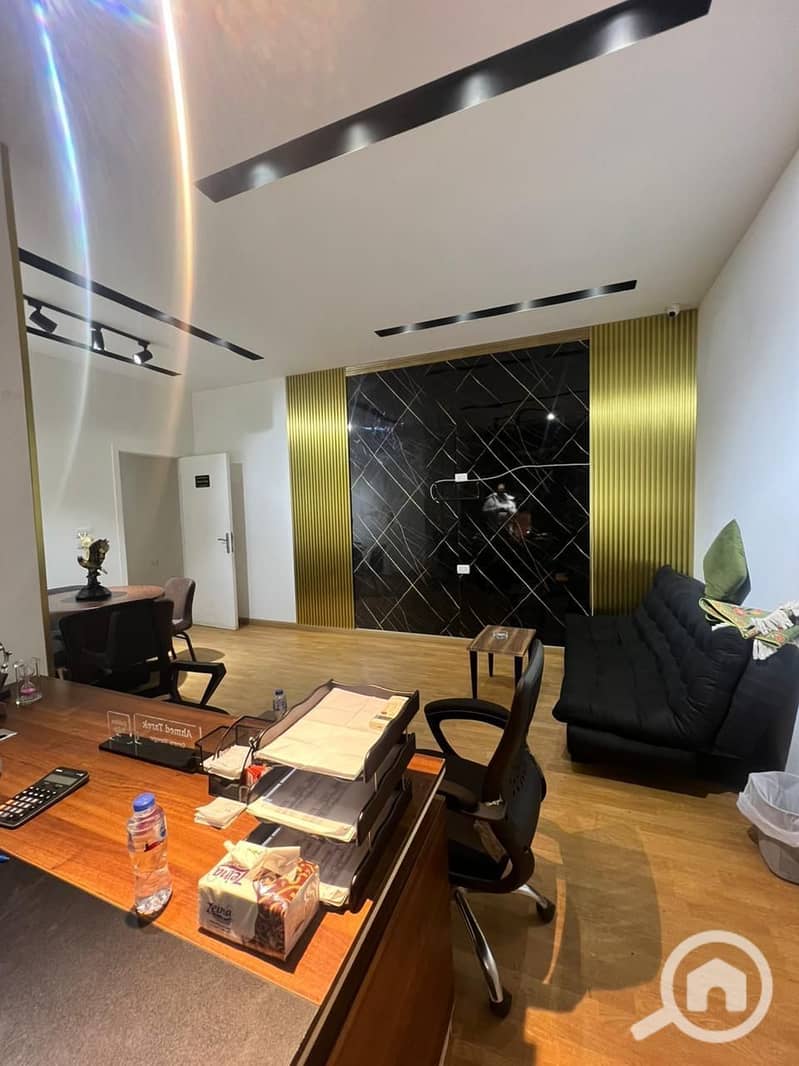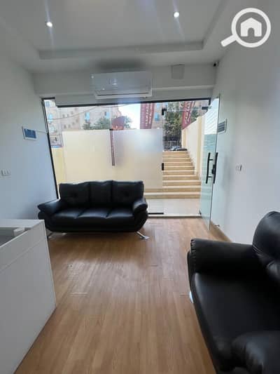 مكتب للإيجار مفروش بالكامل في بيفرلي هيلز منطقة الخدمات قريب من سنتر المختار ارضي بمدخل خاص + اوت دور 140 متر 3 غرف 2 حمام 1 ماستر بحمام رسيبشن .