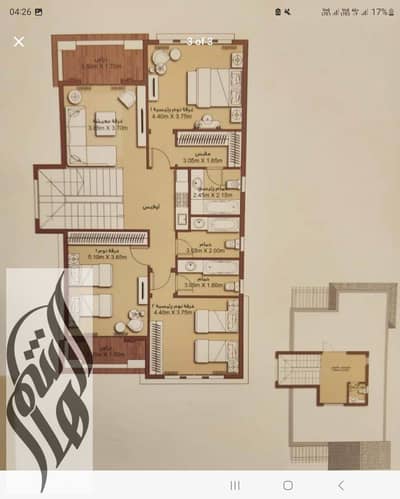 الدور الأول: غرفة نوم ماستر (دريسنج وحمام) + غرفة ليفينج + غرفتين نوم + حمام إضافي + أوفيس + 2 تراس.