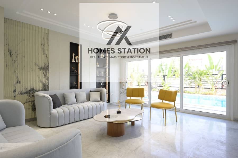 فيلا مستقلة فاخرة للإيجار، أكبر نموذج داخل الكمبوند، مفروشة بالكامل بأثاث مودرن راقٍ، جميع الأجهزة جديدة، تضم حمام سباحة خاص ومساحات تخزين، مناسبة للسكن طويل أو قصير المدى.