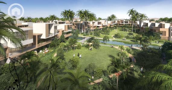 شقه متشطبه باطلاله مميزه علي اللاجون في كمبوند مارفيل Marville من حسن علام بأفضل لوكيشن بجوار بالم هيلز