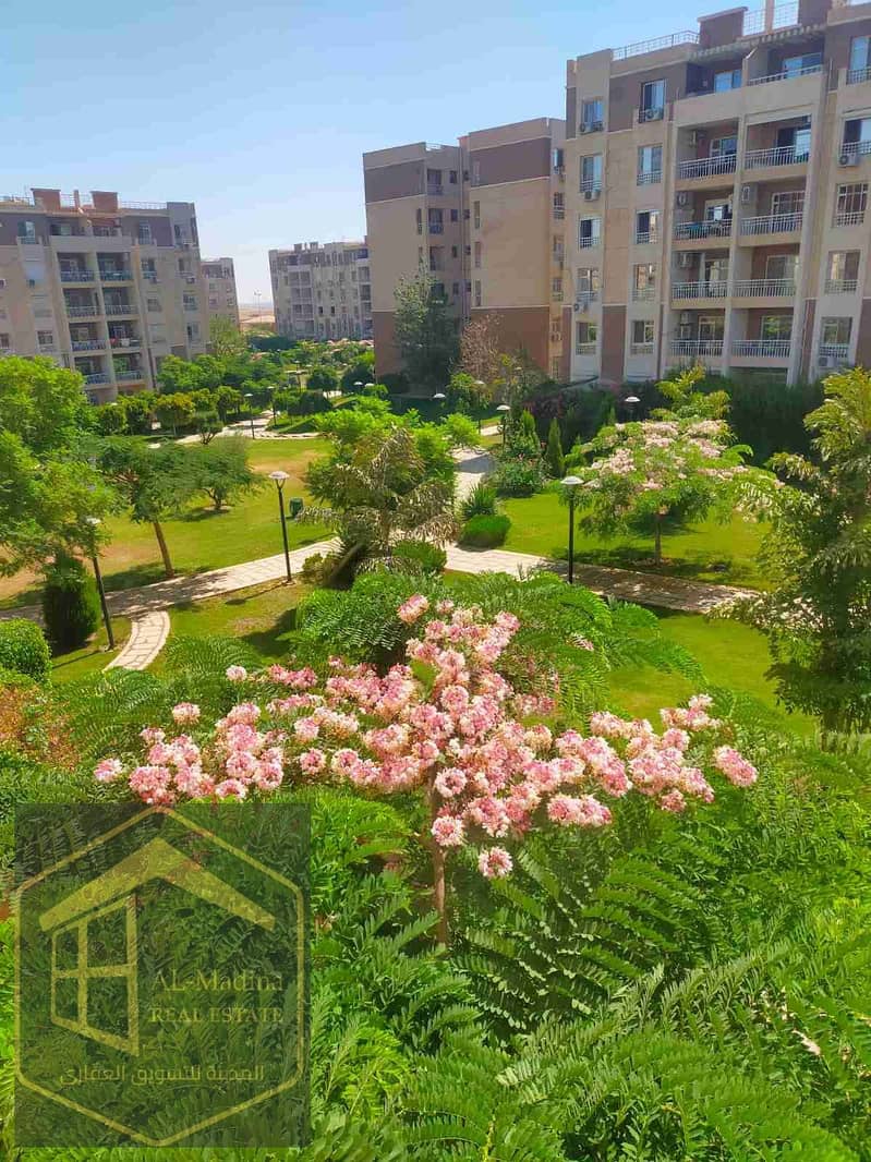 للبيع 96م بالفرش والاجهزه علي جاردن شقه تتكون من غرفتين نوم ومطبخ وحمامين وريسيبشن كبير قطعتين دور تاني B7