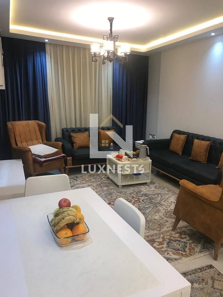 شقة مفروشة بالكامل وتشطيب كامل للإيجار في وان قطامية، بالدور الثالث، بتقسيم عملي ومناسبة للسكن المريح، مع جراج للسيارة.