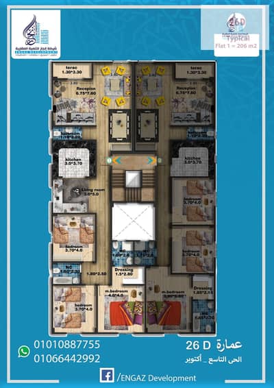 الموقع: الحي التاسع – عمارة D26 – رابع نمرة من محور التحرير – مدينة 6 أكتوبر