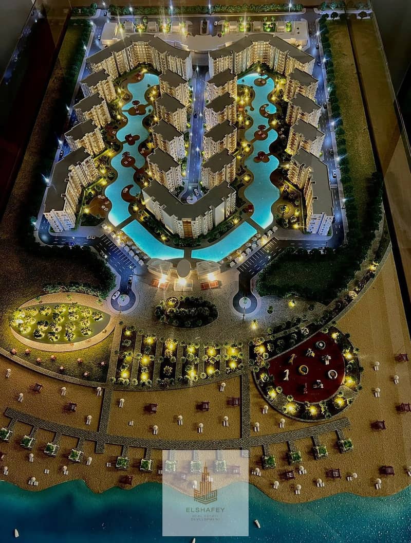 شاليه 85م في ليانا الساحل الشمالي – غرفتين + 2 حمام – فيو لاجون – تشطيب كامل تحت إدارة شركة جلوريا الفندقية وخدمات متكاملة
