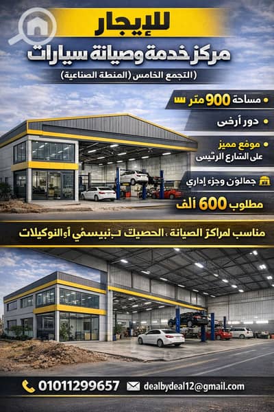 ج.م600,000شهرياًالدفعة المقدّمة: 600,000 ج.ممصنعالمساحة:900 متر مربعمركز خدمه وصيانه للايجار التجمع الخامس المنطقه الصناعيه مساحه 900مترالتجمع الثالث، القاهرة الجديدة، القاهرة الإيميل اتصل