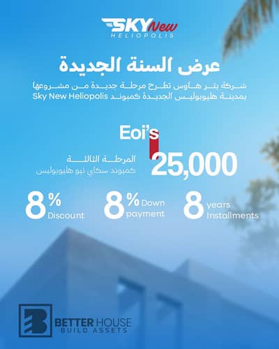 Off-PlanTruBroker™EGP8,500,000EGP 74,000 monthly / 9 yearsDown payment: EGP 425,000Apartment12Area:80 Sq. M.Apartment for Sale at Sodic East, Down payment 5% over 9 yearsSodic East, New Heliopolis, Cairo Email Call