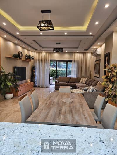 For rent: a 179m ground-floor apartment with a garden in Beverly Hills - Sheikh Zayed, fully furnished in One 16 Beverly Hills compound