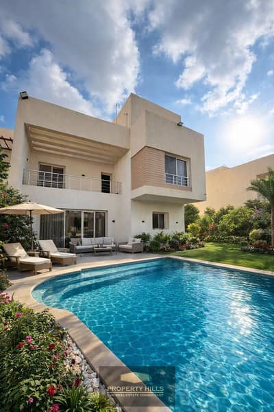Ready-to-move-in panoramic villa, 430 meters, with private swimming pool, next to Mountain View and Nyoum October.