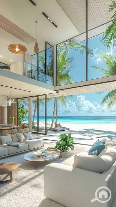A finished chalet with air conditioning, 3 rooms directly on the sea in Seazen الساحل الشمالي next to لافيستا.