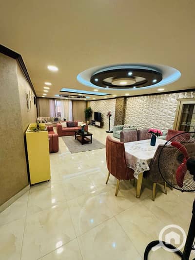 Furnished apartment for rent in New Maadi, near the metro station. First occupancy. Consists of 3 bedrooms, reception, 2 bathrooms (one master with ensuite bathroom), luxurious American-style kitchen, air conditioning, Wi-Fi, natural gas. 12th floor, 2 elevators. Rent required.