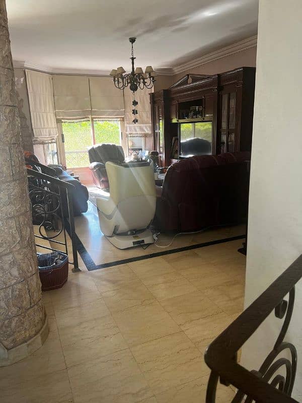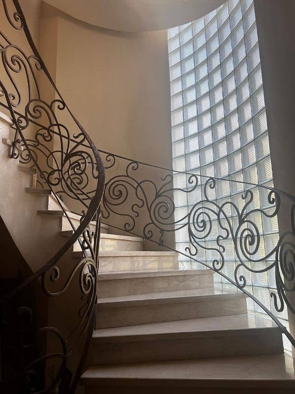 الارضي. ٢ رسبشن و ١ سفره و حمام ضيوف، وغرفه مكتب (بباب علي الحديقه الوميتال وباب حديد خارجي). ومطبخ وغرفه بحمام للمربيه).