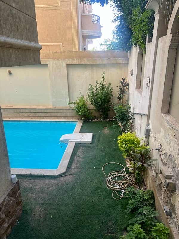 بدروم ٥٦٠ متر ( غرفة غفير + غرفة سواق + حمام + مطبخ + جراج ٣ سيارات )+ (غرفة زجاجية تصلح لمجلس + حمام سباحة سخن و بارد + مجلس مفتوح خارجى + حمام ضيوف )