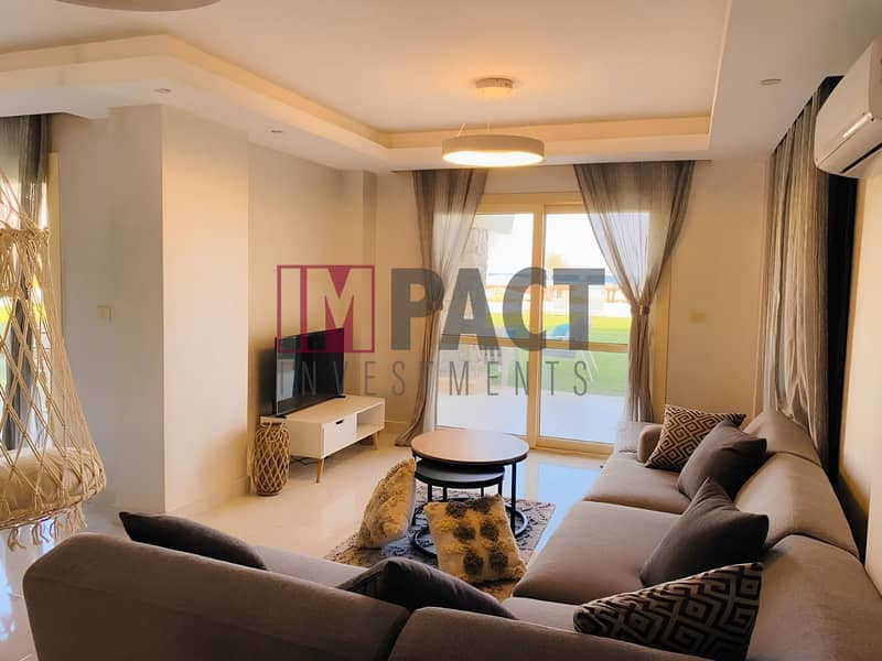 - شالية للبيع ارضى بجاردن استلام فورى sea view