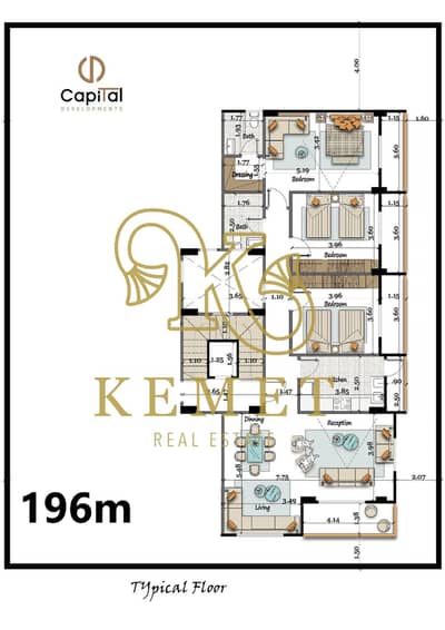 Apartment 196 m, repeated floor, north of Rehab, garden view, corner on a wide street, distinguished location, and construction is underway in the pro