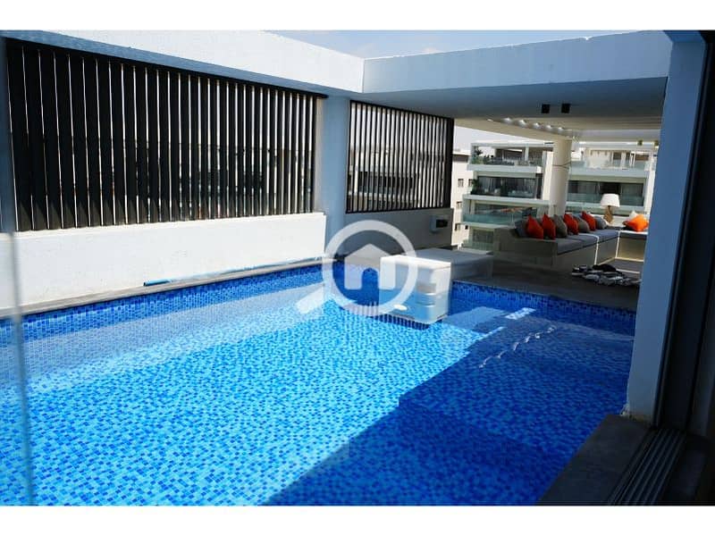 Fully furnished Elite penthouse for rent in Lake view residence compound , Super deluxe finishing with private swimming pool