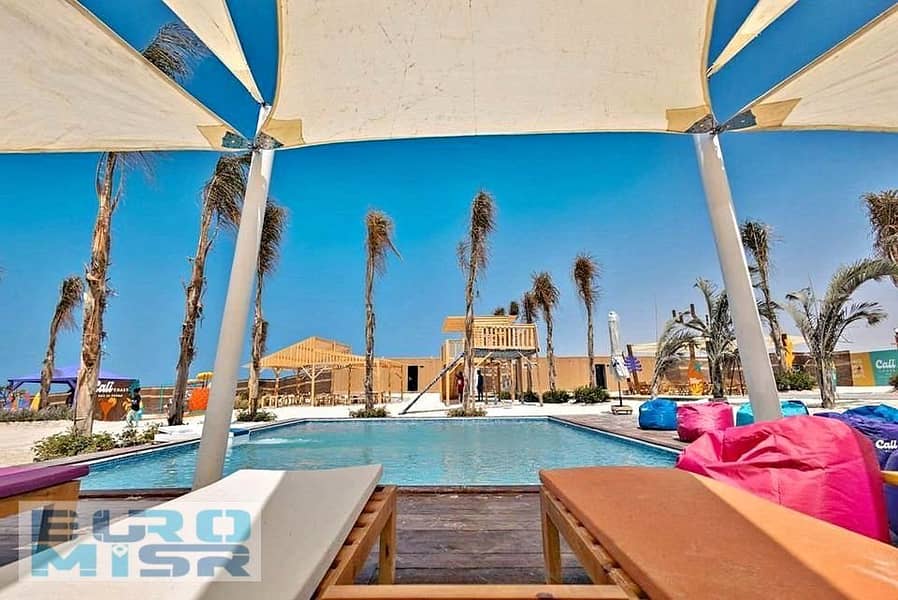 Chalet for sale in Cali Coast Compound, fully finished with a minimum down payment and a payment period of up to 10 years.