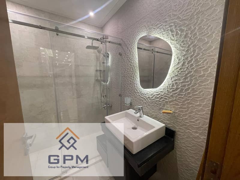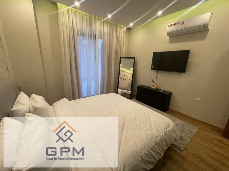 Two-bedroom ground floor apartment with a garden for rent in Lake View Compound - Fifth Settlement